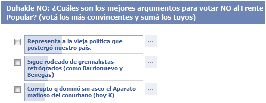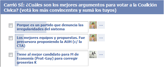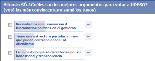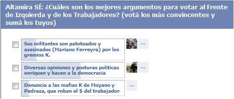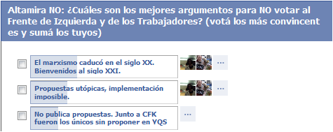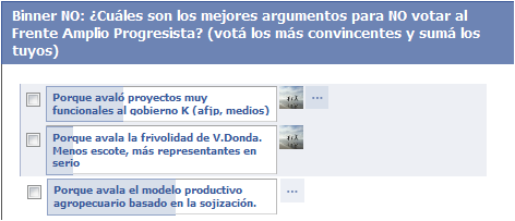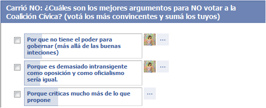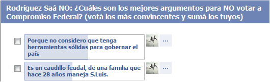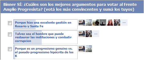 Postulá y votá acá los mejores argumentos de por qué apoyar a tu candidato, y de por qué no apoyar a los otros. Los argumentos más votados hasta el momento son: